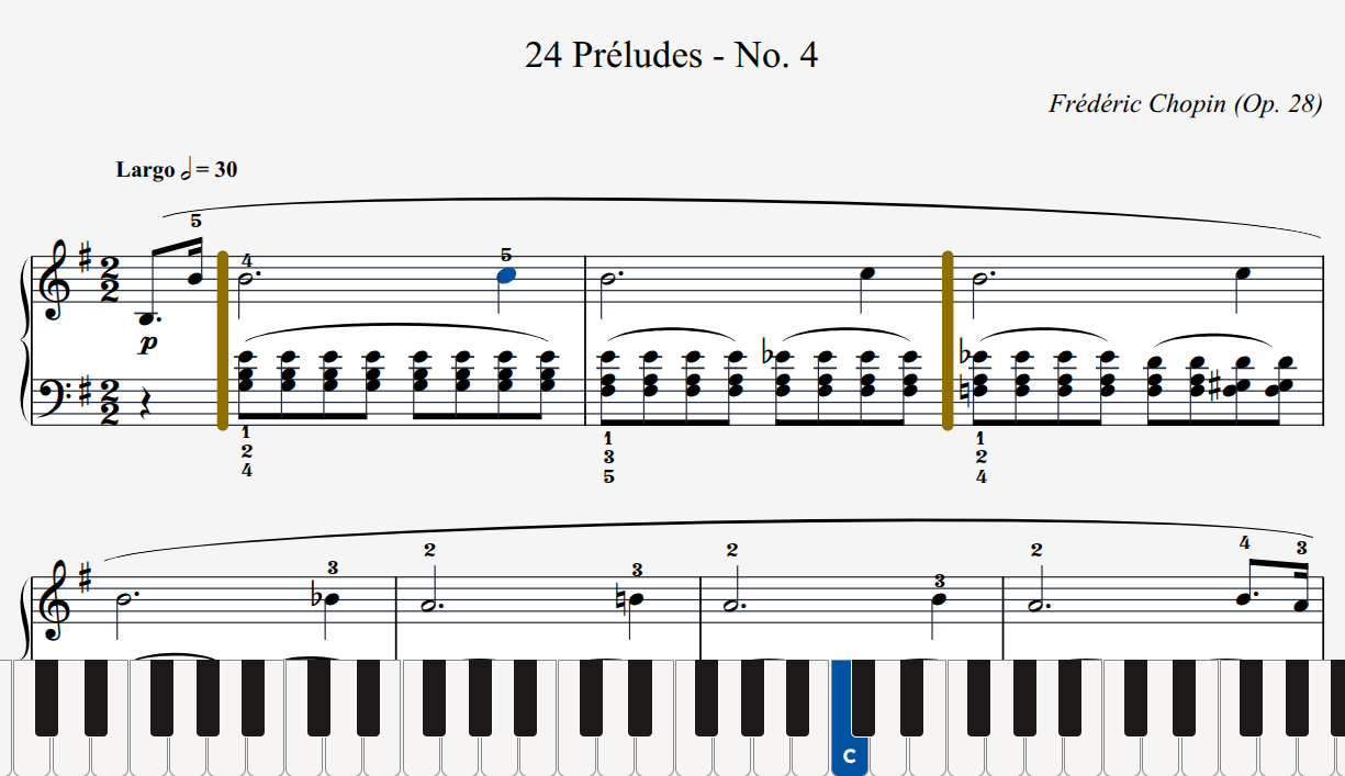 - Note-to-Key Mapping: Click any note in the score to highlight its location on the on-screen keyboard.